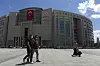 Folk passerer bygningen hvor rettssaken mot journalisten fant sted torsdag 16. juli. Foto: Mehmet Guzel, AP/NTB scanpix