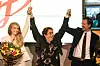 VALGVAKE: KrFs ledertrio på partiets valgvake i Oslo.