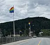 «STOLT PÅ BYGDA»: Under pride-arrangementet i Vennesla vaiet flaggene på Vennesla-broen. Disse ble kappet ned av uvedkommende.