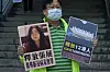 PROTEST: En demokratiaktivist holder plakater med et bilde av Zhang Zhan utenfor den kinesiske sentralregjeringens kontor i Hongkong 28. desember 2020.