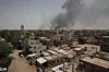 OPPRØR: Røyk stiger opp fra et nabolag i sentrum av Khartoum i Sudan søndag. Det har vært kamper mellom regjeringsstyrker og militsen RSF.