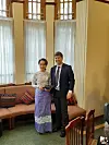 MISJON: Daglig leder Øystein Åsen overreker bibel til tidligere fredsprisvinner og statsminister i Myanmar, Aung San Suu Kyi.