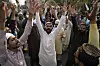 PROTEST: Medlemer av den religiøse gruppa Tehreek-e-Labiak Pakistan ropte slagord i Lahore i april i år mot ei kvinne som var skulda for blasfemi.
