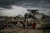 STORE ØDELEGGELSER: Som følge av den etniske konflikten i Manipur har flere lokalsamfunn opplevd at hus, kirker og andre bygninger har blitt påtent og brent til grunnen. Her tar en familie med seg restene fra sitt hjem i byen Sugnu i Manipur etter det som var et voldelig oppgjør i juni.