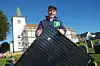 Kyrkjeverje i Strand skiftar beite. Her frå eit pionerprosjektet der solcellepanel vart installert på kyrkjetaket. Arkivfoto: Ove Eikje