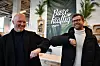 UNIKT SAMARBEID: Daglig leder i NLM Gjenbruk, Bjarte Rydland (t.v.) og rektor på Hedmarktoppen folkehøyskole, Geir Byberg skal samarbeide om tidenes første folkehøyskolelinje i Norge som skal drifte en bruktbutikk.