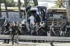 Israelsk politi klatrer om bord i lastebilen som kjørte inn i et busstopp søndag.