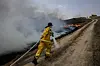 Brannslukking: Israelske brannmannskaper forsøker å slukke en brann forårsaket av brannballonger sendt inn i Israel fra Gaza.