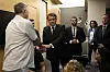 MØTTE PÅRØRENDE: President Emmanuel Macron møtte pårørende av franske ofre for Hamas-angrepet da han ankom Tel Aviv tirsdag. Foto: AP / NTB
