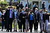 Innenriksminister Gérald Darmanin (i midten) ankom fredag ettermiddag politistasjonen i La Chapelle-sur-Erdre. Foto: Laetitia Notarianni / AP / NTB