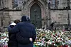 BLOMSTERHAV: Store mengder blomster er lagt ned ved Johanneskirken like ved markedet i Magdeburg.