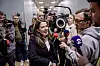 SIKTELSE: Presseoppbudet var massivt under fengslingsmøtet. Bistandsadvokat Hege Salomon snakker med pressen i Oslo tinghus etter at Marius Borg Høiby ble framstilt for varetektsfengsling i Oslo tingrett.