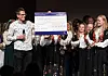 SUKSESS: Elevrådet ved Tryggheim vgs. og russen overrekte symbolsk sjekk til leiar Werner Larsen i Misjonssambandet sørvest.