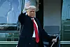 VENTER COMEBACK: Donald Trump vinker til sine tilhengere i det han forlater Washington 20. januar. En del av hans tilhengere tror at han kommer tilbake til makten 4. mars.