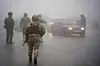 Regjeringssoldater kontrollerer biler i Kasakhstan største by Almaty.