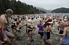 395 isbadere, noen med nisselue, hev seg i det kalde vannet på Olavsberget camping i Porsgrunn søndag ettermiddag.
