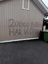 TAGGET NYMALT VEGG: «20000 barn har vi drept» stod det på husveggen da Nina Hansen våknet sist torsdag.