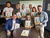 VARM MOTTAKELSE: Haakon Lie (til høyre), Thomas Hansen (i mørk t-skjorte) og styreleder Anders Torvill Bjorvand (framme til venstre) under signeringen hos David C Cook.