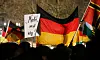 Pegida-demonstranter vifter med tyske flagg og et flagg som til forveksling ligner det norske i en demonstrasjon mot innvandring i Dresden. Foto: Fabrizio Bensch / Reuters / NTB scanpix