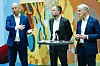 NY MÅLING: Sp-leder Trygve Slagsvold Vedum (vestre), SV-leder Audun Lysbakken (midten) og Ap-leder Jonas Gahr Støre (høyre) får flertall på Stortinget, i en ny måling.
