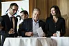 Byråd for kultur og næring Hallstein Bjercke (t.v.), byrådsleder og leder i søkerkomiteen Stian Berger Røsland (bak), president i Norges idrettsforbund Børre Rognlien og varaordfører Libe Rieber-Mohn da de la fram kuttforslagene for vinter-OL i Oslo. Foto: Berit Roald / NTB scanpix