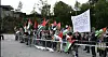 ØNSKER ARRESTASJON: På et av bannerne til demonstrantene står det: «Mordere skal arresteres, ikke inviteres».