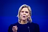 Oslo 20240419. Frp-leder Sylvi Listhaug taler under Fremskrittspartiets landsmøte 2024 på Clairon Airport Hotel på Gardermoen.Foto: Lise Åserud / NTB