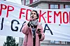 APPELL: Palestinakomiteens leder, Line Khateeb, holder appell under en demonstrasjon ved Jernbanetorget i Oslo i oktober.