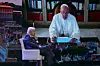 Den tidlegare amerikanske presidenten samtalte med pave Frans via skjerm under konferanse.