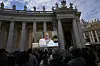 Paven dukket opp på Petersplassen søndag via en stor monitor som viste ham sittende i kapellet sitt.