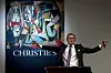 Auksjonarius Jussi Pylkkanen foran «Les femmes d'Alger» hos Christie's i New York. Foto: Carlo Allegri / Reuters / NTB scanpix