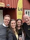 JUBLER: KrF Trøndelag jubler for ny meningsmåling. Fra venstre: Edvard Kurtzendorf, 2.-kandidat for Trøndelag KrF til stortingsvalget, Majen Helen Sævik, 1.-kandidat, andre nestleder i KrF Jorunn Gleditsch Lossius, og KrF