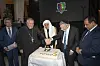 FEIRING: Kjell Magne Bondevik og Aamir J. Sheikh ser på mens de tre prisvinnerne Ioan Sauca, Mohammad Bin Abdulkarim Al-Issa og Michael Melchior deler en symbolsk kake.