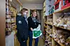 N/A: MAT TIL ALLE: En frivillig er alltid med på å dele ut matvarene. Karin Haugnes er klar med plastpose mens Guro Sæther velger seg ut bakervarer.