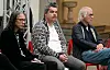 UTSTILLING: Her er svenske Dan Park (til venstre) sammen med danske Uwe Max Jensen og Muhammed-tegner Lars Vilks (til høyre) på en pressekonferanse i Warszawa 27. august før åpningen av utstillingen.