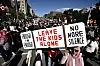 NOK ER NOK: Deltakerne i marsjen reagerer på undervisning om kjønn og seksualitet i canadiske skoler.
