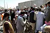 Vil vekk: Folk vifter med reisedokumenter ved et sjekkpunkt nær den internasjonale flyplassen i Kabul.