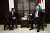 Palestinas president Mahmoud Abbas (til høyre) fotografert sammen med Isaac Herzog, lederen for det israelske opposisjonspartiet Sionistunionen, i Ramallah tirsdag. Foto: Mohamad Torokman / Reuters / NTB scanpix