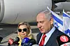 BEN GURION: Benjamin og Sara Netanyahu snakket til pressen på Ben Gurion-flyplassen, før de gikk ombord i El Al-flyet som tok dem til Ukraina. Politiske kommentatorer hevder at besøket er ledd i Netanyahus valgkamp.