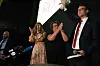 VALGVAKE: KrF-leder Kjell Ingolf Ropstad på KrFs valgvake i Oslo. Til venstre: Andre nestleder Ingelin Noresjø og første nestleder Olaug Bollestad.