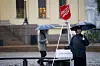 Frelsesarmeen har som juletradisjon å sette ut gryter der man kan legge igjen penger som går til trengende i samfunnet. Foto: Heiko Junge / NTB