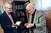GOD GAMMEL ÅRGANG: Vidar Kristensen (t.v.) og Åge Haavik foran Kristensen bokskap med gamle salmebøker.
