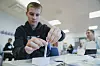 SELVTEST: Helsedirektoratet har oppfordret elever og ansatte i skoler og barnehager om å teste seg 24 timer før første skoledag. Her tar Agon Shala (15) en selvtest i klasserommet på Apalløkka skole i Oslo i høst.
