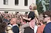 OSLO SENTRUM: Både unge og eldre tilskuere på utendørskonsert på Universitetsplassen.