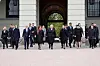 SOLBERG: Tidligere statsminister Erna Solberg og hennes mannskap kom torsdag ut på slottsplassen etter sitt siste statsråd. Høyre-lederen hadde regjeringsmakten fra 2013 til 2021, den siste tida i koalisjon med KrF og Venstre. Foto: Ole Berg-Rusten / NTB