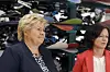 Statsminister Erna Solberg (t.v.) roser regjeringskollega Solveig Horne for innsatsen for å få kommunene til å motta flyktninger. Foto: Terje Pedersen / NTB scanpix