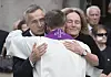 I en ny bok forteller Jens Stoltenberg om årene som Natos generalsekretær, og tiden da han mistet sin far. Her fra begravelsen med hans søster Camilla og prest Sturla Stålsett.