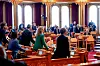 Stortingsrepresentanter blir sittende for å stemme ja og reiser seg for å stemme nei under votering om habilitetssakene.