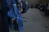IFØRT NIKAB: En afghansk kvinne i kø i Kabul for å motta pengestøtte fra Verdens matvareprogram (WFP). Organisasjonen har trappet opp bistanden etter at FNs advarte om at flere millioner afghanere lever i hungersnød.