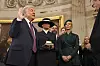 Frå pianoet i Kongressbygningen tona «Stor er din trofasthet» dei siste minutta før påtroppande presidentfrue Melania Trump gjorde entré. Seremonien braut med tradisjonen ved å føregå innandørs, noko som også skjedde med Ronald Reagan i 1985. Men formene var til å kjenne igjen, også dei religiøse elementa.